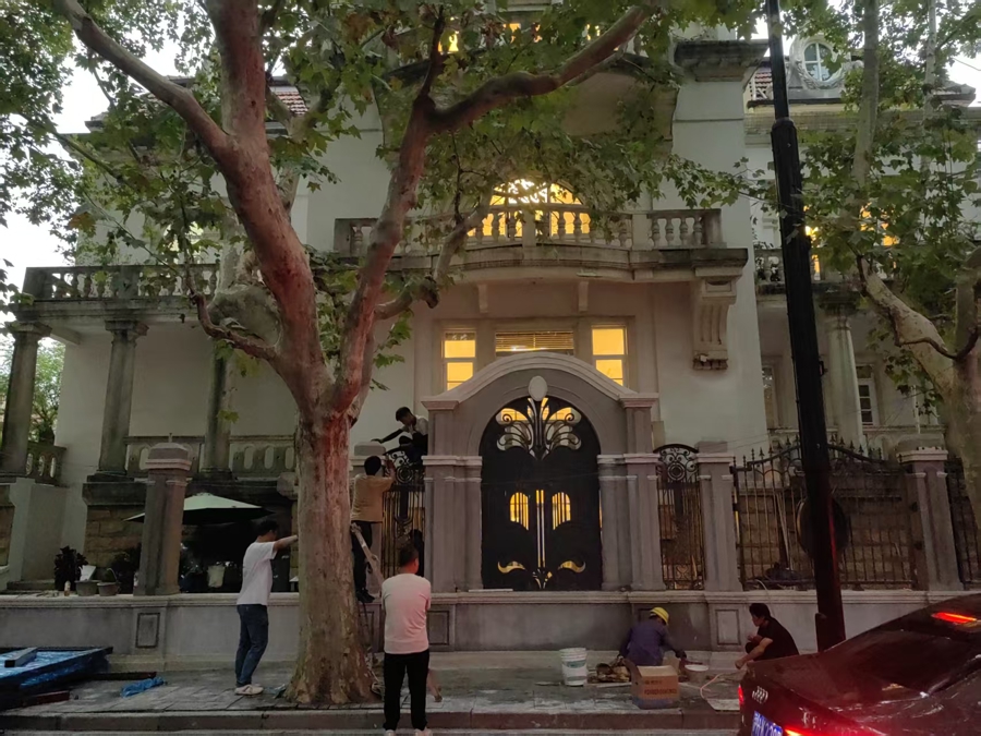 沿着武康大楼往北走约200米,就能看到上影演员剧团漂亮的白色小洋楼。外墙原本是简单的灰色。上影演员剧团团长佟瑞欣拿出手机,上面记录着每一天的施工变化。9月17日开始搭建围栏,拆掉旧墙那天是9月20日,正好是他的生日。“以前我从没意识到,装修的声音也可以这么‘美妙’。”他说,每天,他都要来现场听着围墙生长的声音,看它一点点变化。